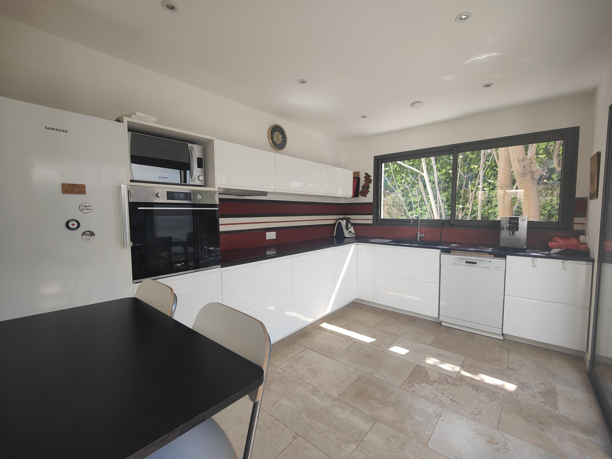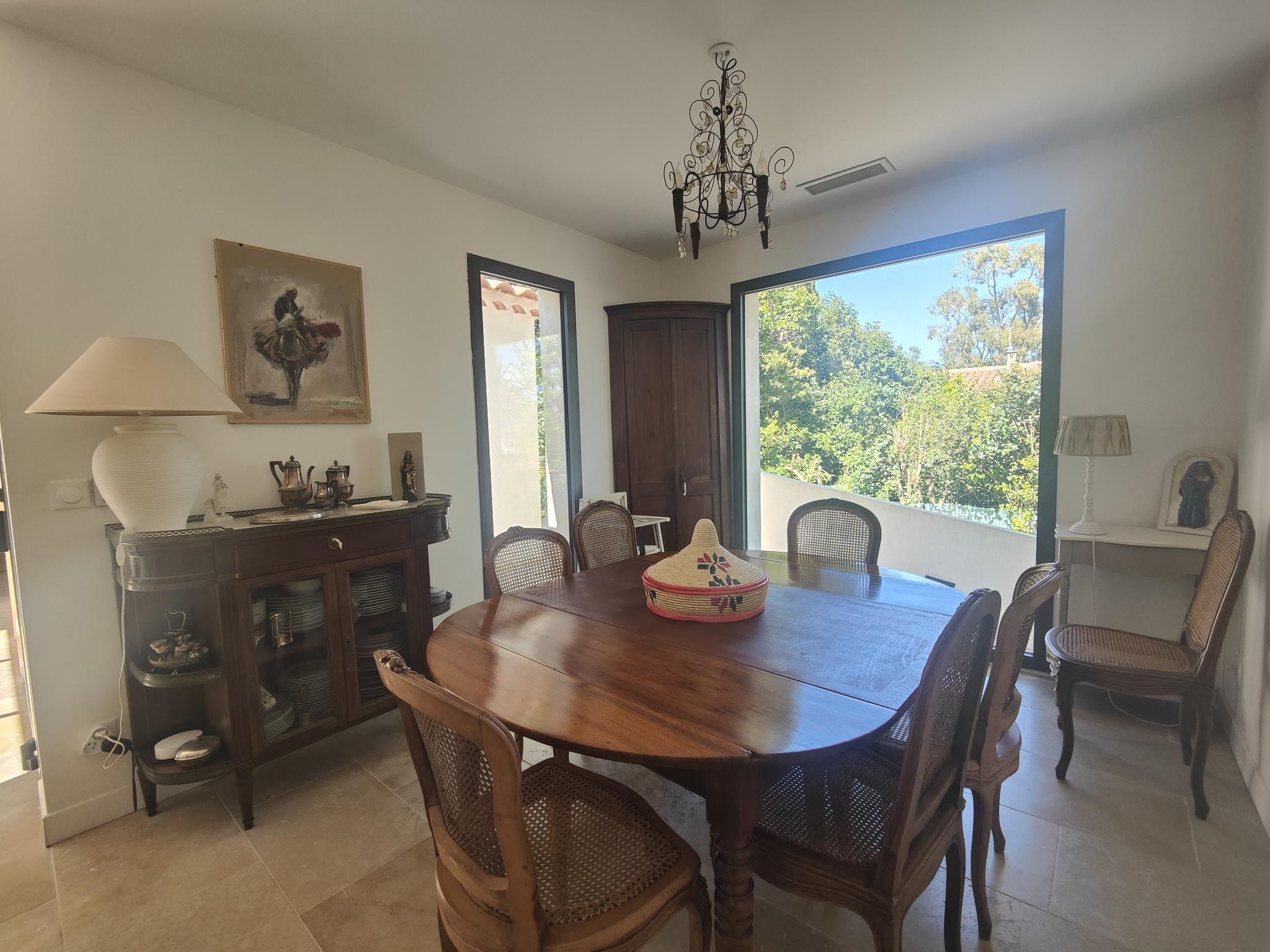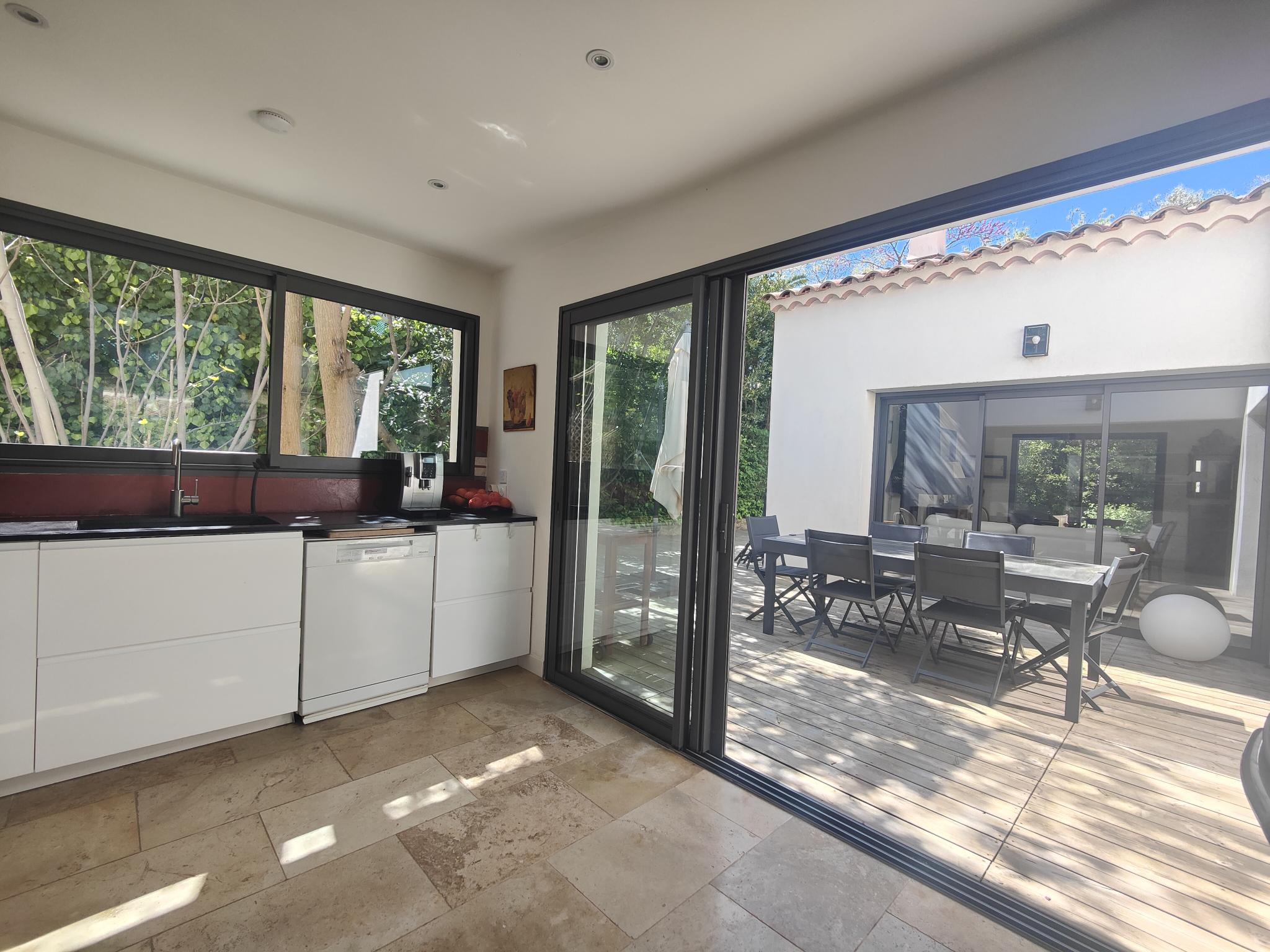Au cœur du très recherché quartier de Sainte-Marguerite à La Garde, cette élégante maison d’architecte de plain-pied entièrement rénové en 2022 s’inscrit dans un environnement privilégié, à l’abri des regards, en fond d’impasse, dans un calme absolu. Vous serez conquis par sa situation, à quelques minutes à pied des plages de Magaud et Méjean et la proximité immédiate de la piste cyclable. Dès l’entrée, la propriété séduit par ses lignes contemporaines, ses volumes parfaitement maîtrisés et la fluidité de ses espaces de vie baignés de lumière. Le séjour, sublimé par une cheminée double foyer, s’ouvre généreusement sur les terrasses et le jardin, invitant à une vie dedans-dehors particulièrement agréable. La cuisine, pensée comme un véritable espace de convivialité avec sa verrière, prolonge harmonieusement l’espace vers une salle à manger chaleureuse. La maison offre un agencement idéal pour une vie de famille ou pour recevoir, avec deux véritables suites, ainsi que deux autres chambres confortables, chacune bénéficiant d’un cadre apaisant et intime. À l’extérieur, le charme opère immédiatement : jardin paysager aux essences méditerranéennes, patio intimiste, terrasses ensoleillées et espace repas extérieur composent un véritable havre de paix. Pensée dans les moindres détails, cette propriété propose des prestations de qualité : pompe à chaleur gainable, climatisation, arrosage automatique, adoucisseur d’eau, système d’alarme, et accessibilité PMR. Enfin avec la possibilité de surélévation et de création d'une piscine, en fait un bien évolutif et précieux sur le secteur. Le garage vient parfaire le confort au quotidien. Une adresse confidentielle pour les amateurs de biens de caractère, alliant architecture, sérénité et art de vivre méditerranéen.